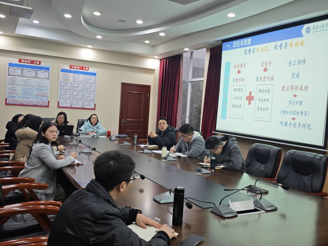 接着,景兴红副院长以“深化教育教学改革,推进智慧教学赋能,促进人才培养提质增效”为主题,结合学校“两融一改”工作部署,围绕专业建设、课程建设、教学运行、师资发展等关键领域作总结交流。他全面梳理了学院2025年教学工作的亮眼成果,包括成功申报新专业、市级一流课程、市级实践教学平台及市级重点教改项目等,充分彰显了学院在教育教学改革中的扎实举措与显著成效。同时,他清醒指出学院在人才培养、教学管理、教师业务能力提升等方面仍存在薄弱环节。针对上述问题,他明确了后续工作路径:一是搭建骨干帮扶体系,以成果为导向优化绩效激励机制,强化骨干师资培育,筑牢教师队伍稳定根基;二是紧扣“两融一改”要求,依托“2.5+1.5”分阶段培养模式,提前统筹谋划师资、项目、实施等核心要素;三是压实课程组主体责任,强化教学全过程督导检查,着力提升课堂教学实效,全方位推动人才培养质量迭代升级。