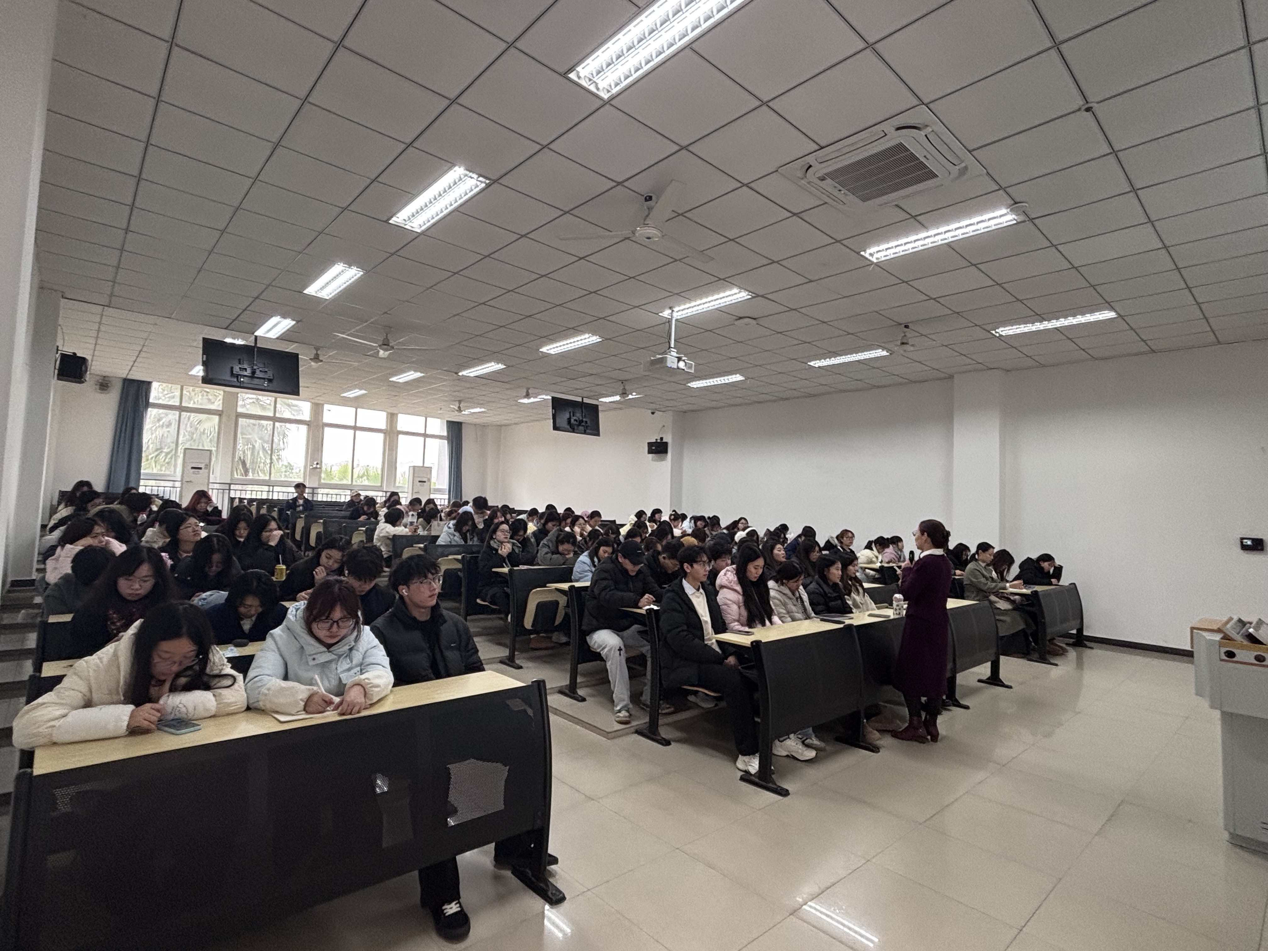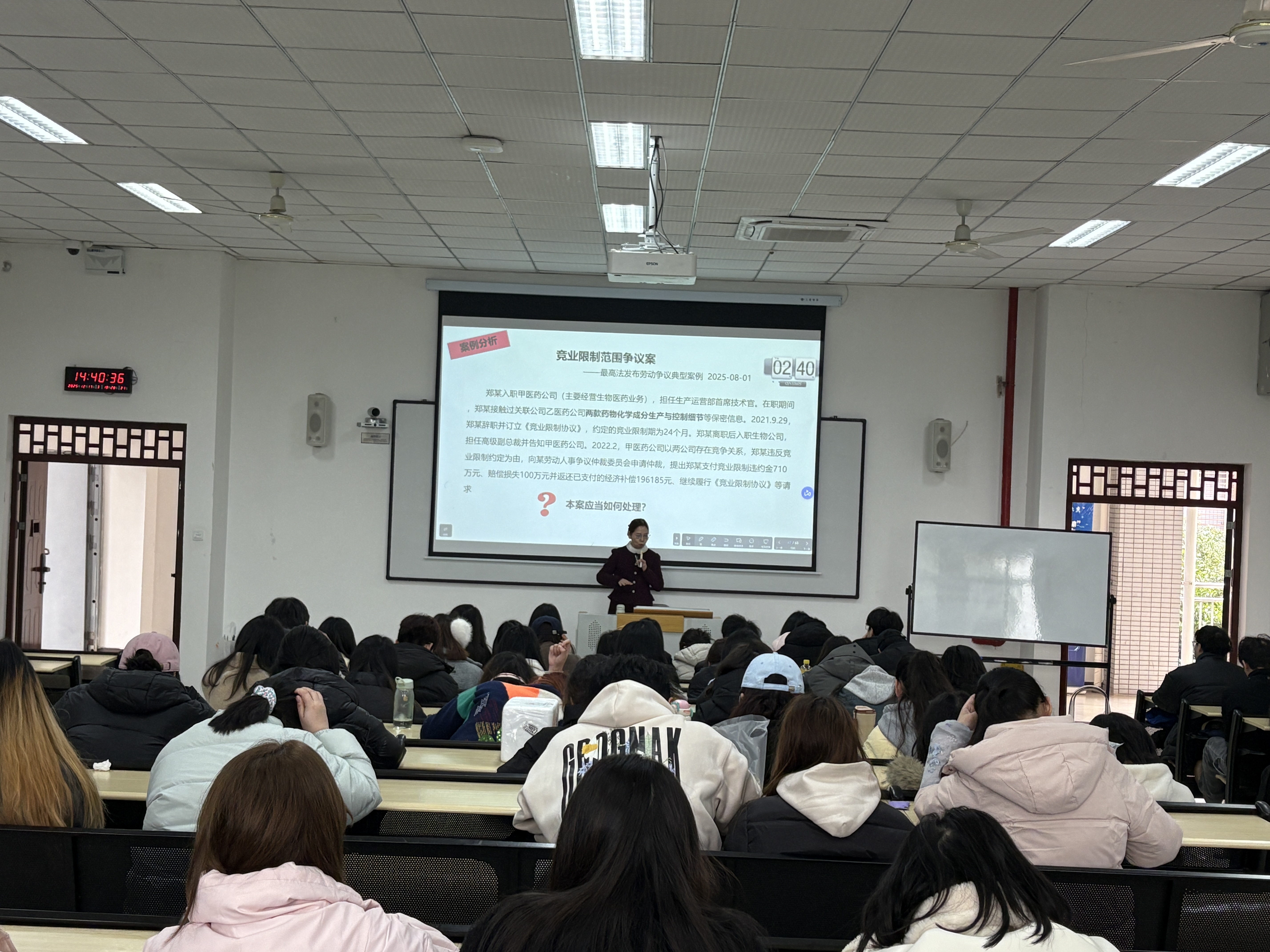本网讯(图/文 肖鸿艳)为深化人力资源专业学生对劳动法律实务的理解,促进法律理论与职场争议处理实践的有机结合,人力资源系特邀重庆市规划和自然资源局宣传教育中心崔太群老师于2025年12月17日1:30在南泉校区第六教学楼204开展题为《释法明理:“劳动争议司法解释二”解读》的专题讲座。本次讲座吸引了近170名学生参与。