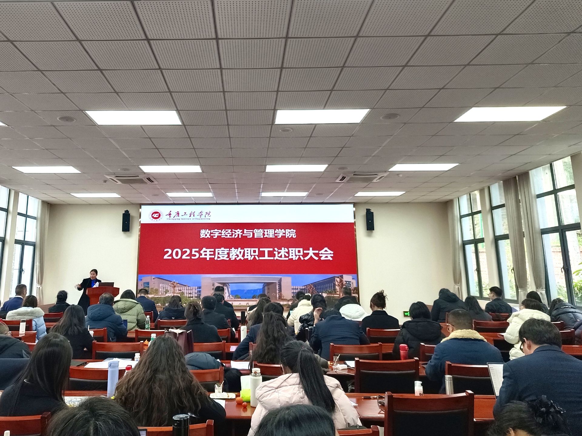 本网讯(图/文 马蒙)为全面总结过去一年的工作成效,进一步激发教职工履职尽责、干事创业的热情,1月10日,数字经济与管理学院在行政楼201会议室举行2025年度教职工述职大会。学院全体教职工参会。