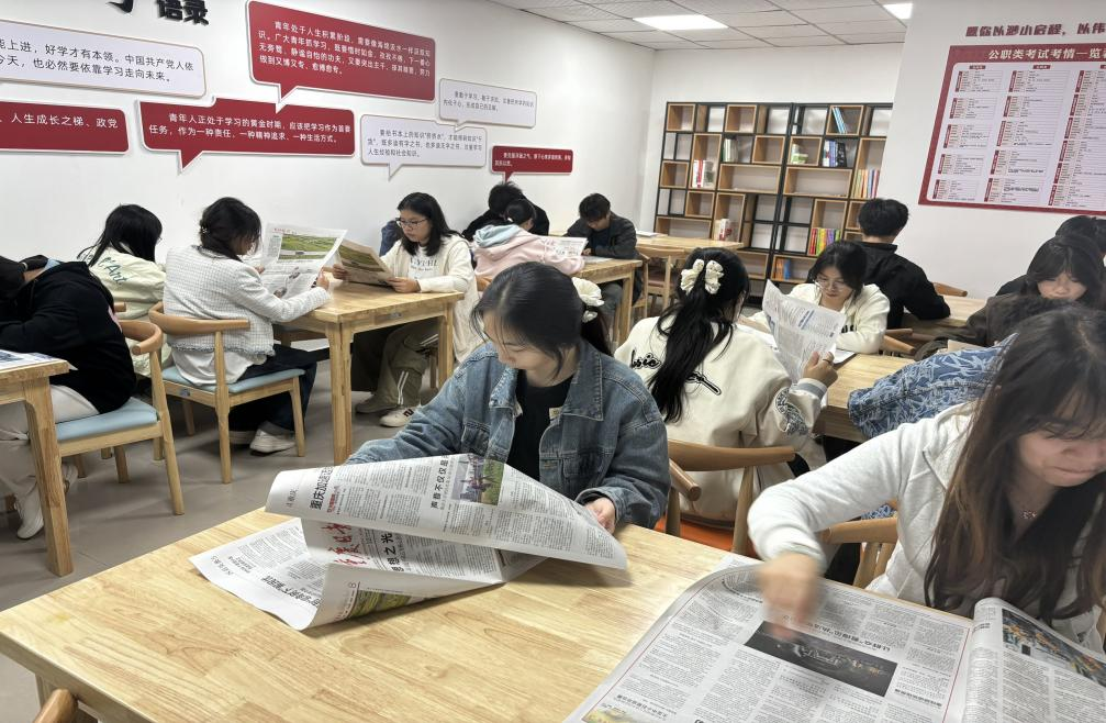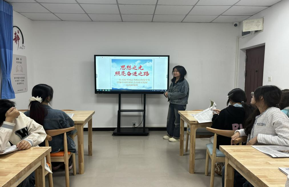 活动第一期以重庆日报研读、研讨为核心,依托“学习强国”平台,聚焦最新时政要闻——“思想之光,照亮奋进之路”,引导学子“线下读报、实地践行”。参与活动的同学们围坐在一起,神情专注地研读报纸,时而眉头微蹙思考,时而笔尖轻划标注。在时政精讲环节,大家目光齐聚在大屏幕,随着讲解人员对最新时政要闻、政策的深入剖析,现场不时响起轻声的讨论与赞同的点头。到了互动分享环节,同学们踊跃发言,有的结合土木专业畅谈城市建设政策的实践意义,有的从智慧建筑角度分析行业发展与党建引领的关联。思想的火花在交流中不断碰撞,每个人的脸上都洋溢着对知识的渴求与对党性修养提升的热忱,整个工作站充满了浓厚的学习氛围与积极向上的能量。