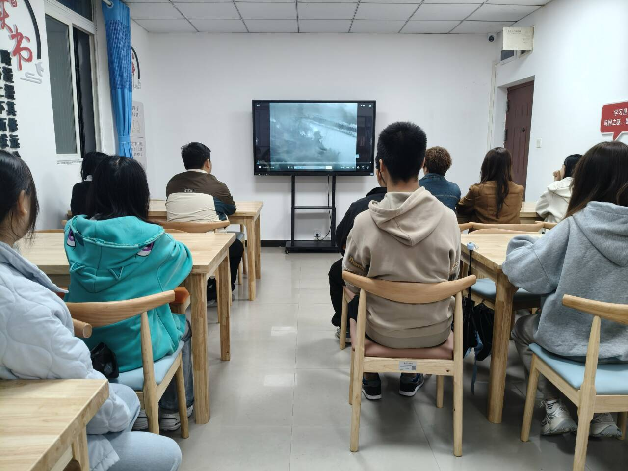 本次系列活动创新采用“观影+研讨+延伸学习”三维模式,首期活动在和五工作站开展,聚焦红色经典影片《红日》。观影过程中,孟良崮战役里解放军战士浴血奋战、奋勇冲锋的震撼场景,让学生党员沉浸式重温革命先辈的峥嵘奋斗历程,深刻体会到今日幸福生活的来之不易,进一步激发了爱国情怀与责任意识。