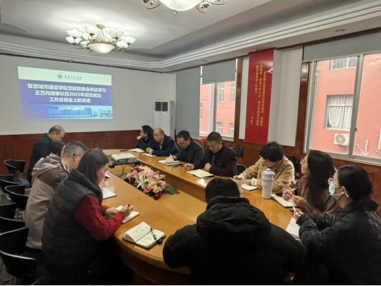 本网讯(文/吴俊峰 图/谭涵丹)12月1日,智慧城市建设学院召开党政联席会专题传达学习王万均理事长在2025年招生就业工作总结会上的讲话精神,学院党政领导班子、系部负责人、行政人员参加了会议。