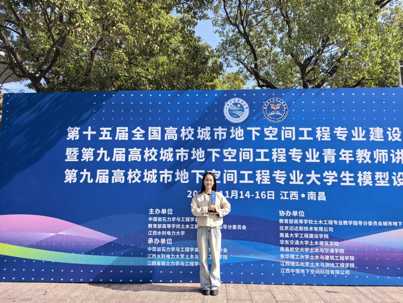 本网讯(文/图 智慧城市建设学院 林俊) 近日,第十五届高校城市地下空间工程专业建设研讨会暨第九届青年教师讲课大赛在江西南昌圆满落幕。我院青年教师袁兰凭借对《隧道与地下工程》课程的深度钻研,以扎实的教学功底、创新的课程设计及生动的课堂呈现,成功斩获讲课大赛一等奖。