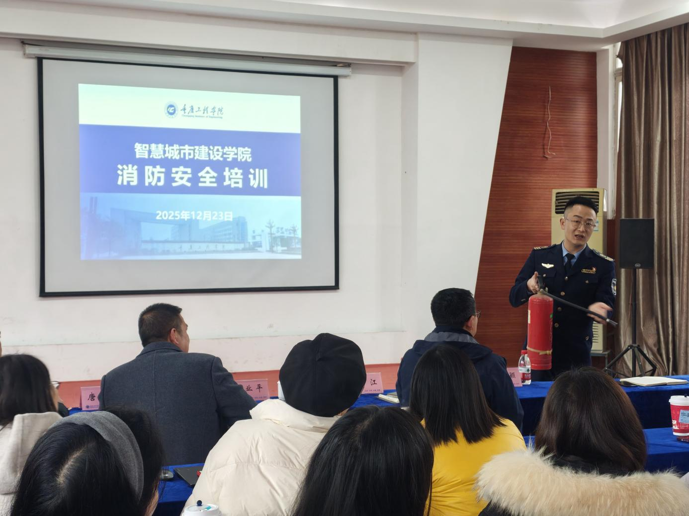 本网讯(图/吴俊峰 文/谭涵丹) 为了强化消防安全意识,普及火灾逃生自救知识,提升应对火灾风险的应急处置能力。智慧城市建设学院于12月23日下午在学院办公楼3楼多功能厅开展消防安全培训,特邀专业消防安全培训教官胡云波授课,学院全体教职工参会。