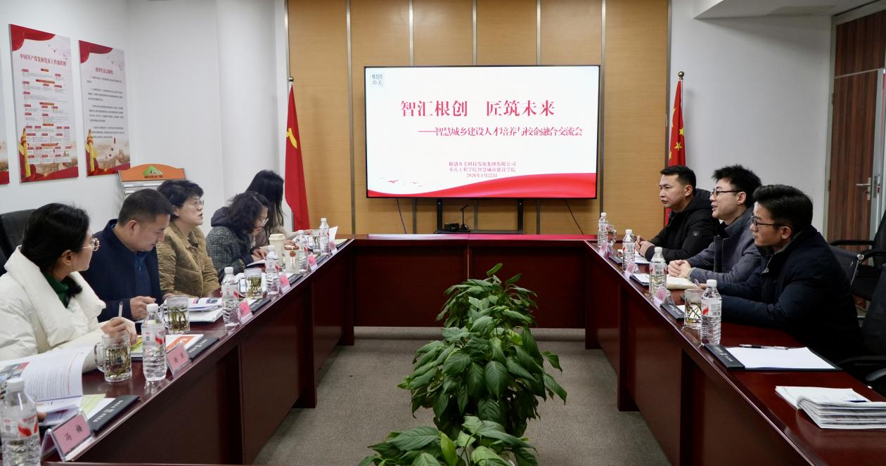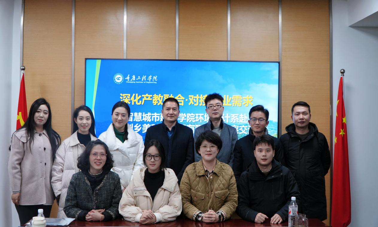 智慧城市建设学院党总支书记唐和平、副院长李颖、环境设计系主任杨玥、副主任刘婧、教研室主任冯梅、双创负责人兰妮一行与根创乡美集团董事长兼党支部书记邱金根,规划设计事业部总监周伟、费明江、丁庆松,公司新员工及重庆工程学院优秀毕业生代表朱家欣共同参与座谈,双方围绕校企协同育人、融合发展等核心议题展开深度研讨,共探合作新路径。