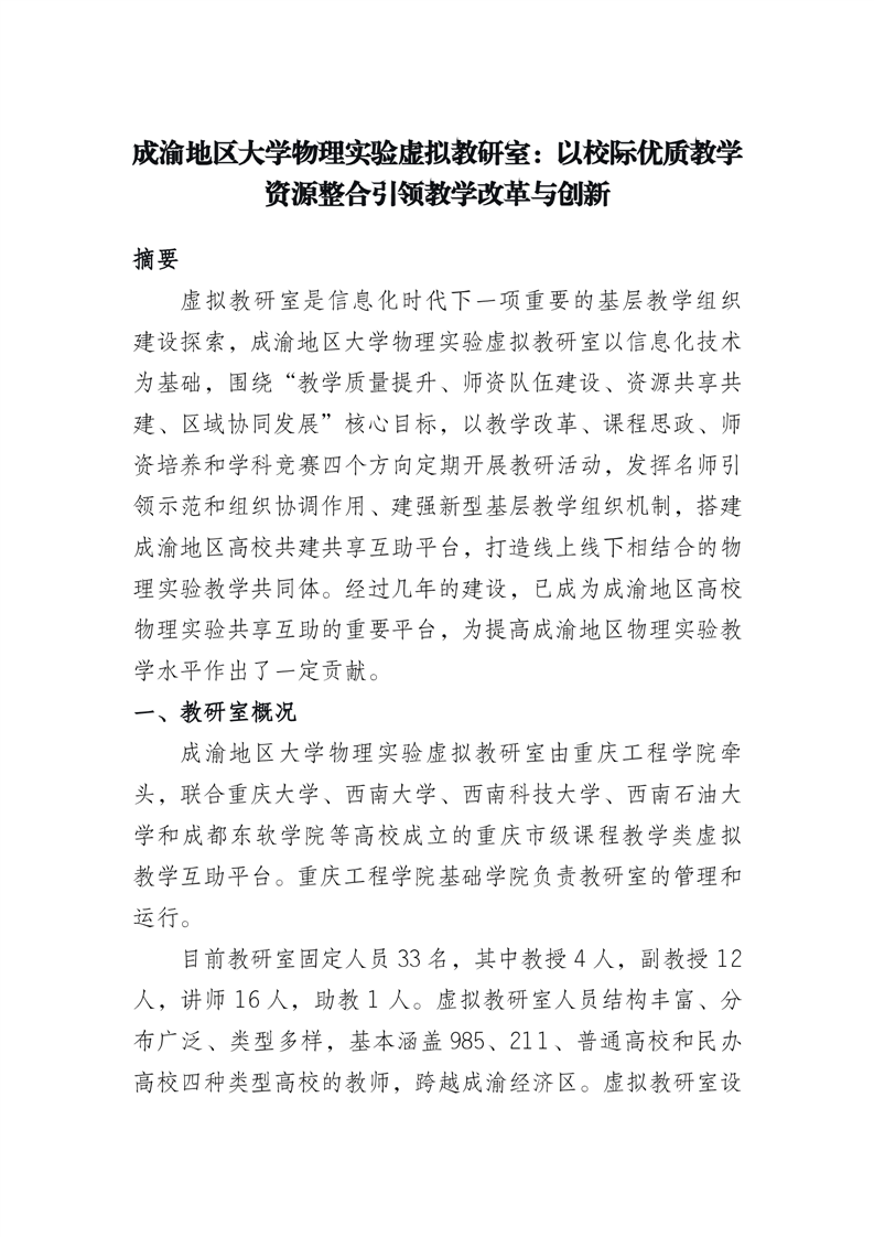 示范基层教学组织建设案例-成渝地区大学物理实验虚拟教研室