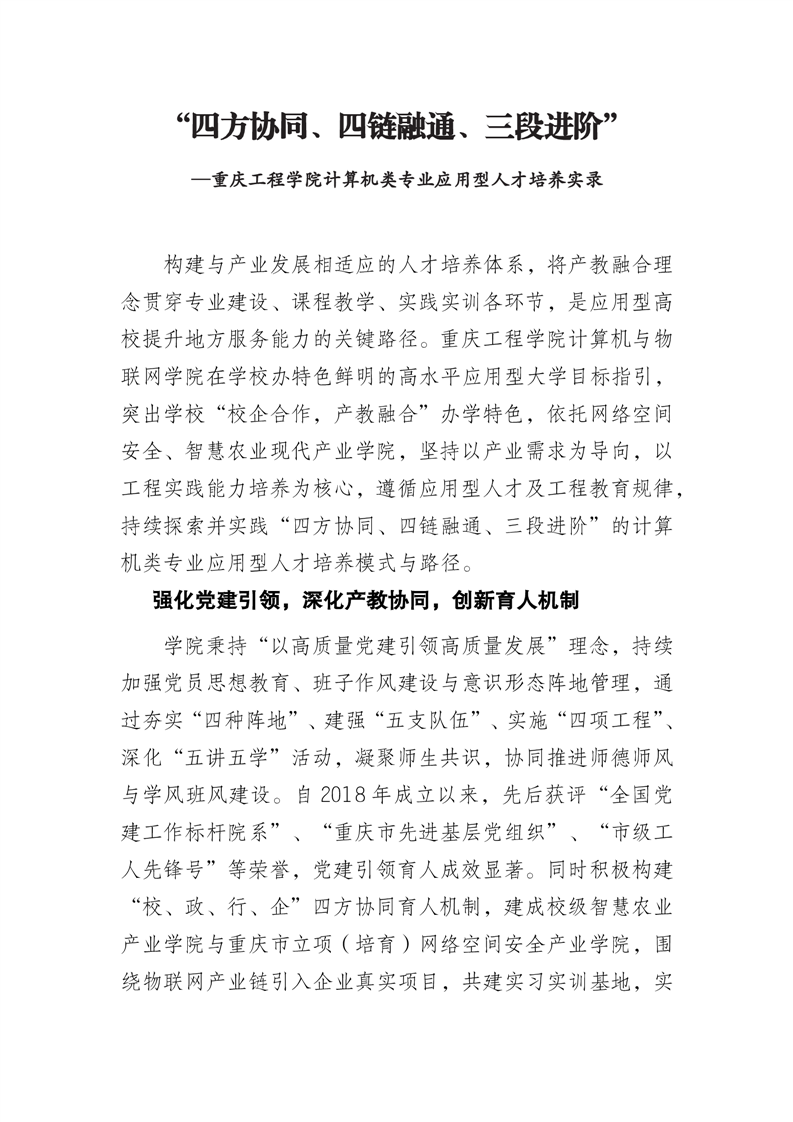 “四方协同、四链融通、三段进阶”———重庆工程学院计算机类专业应用型人才培养实录