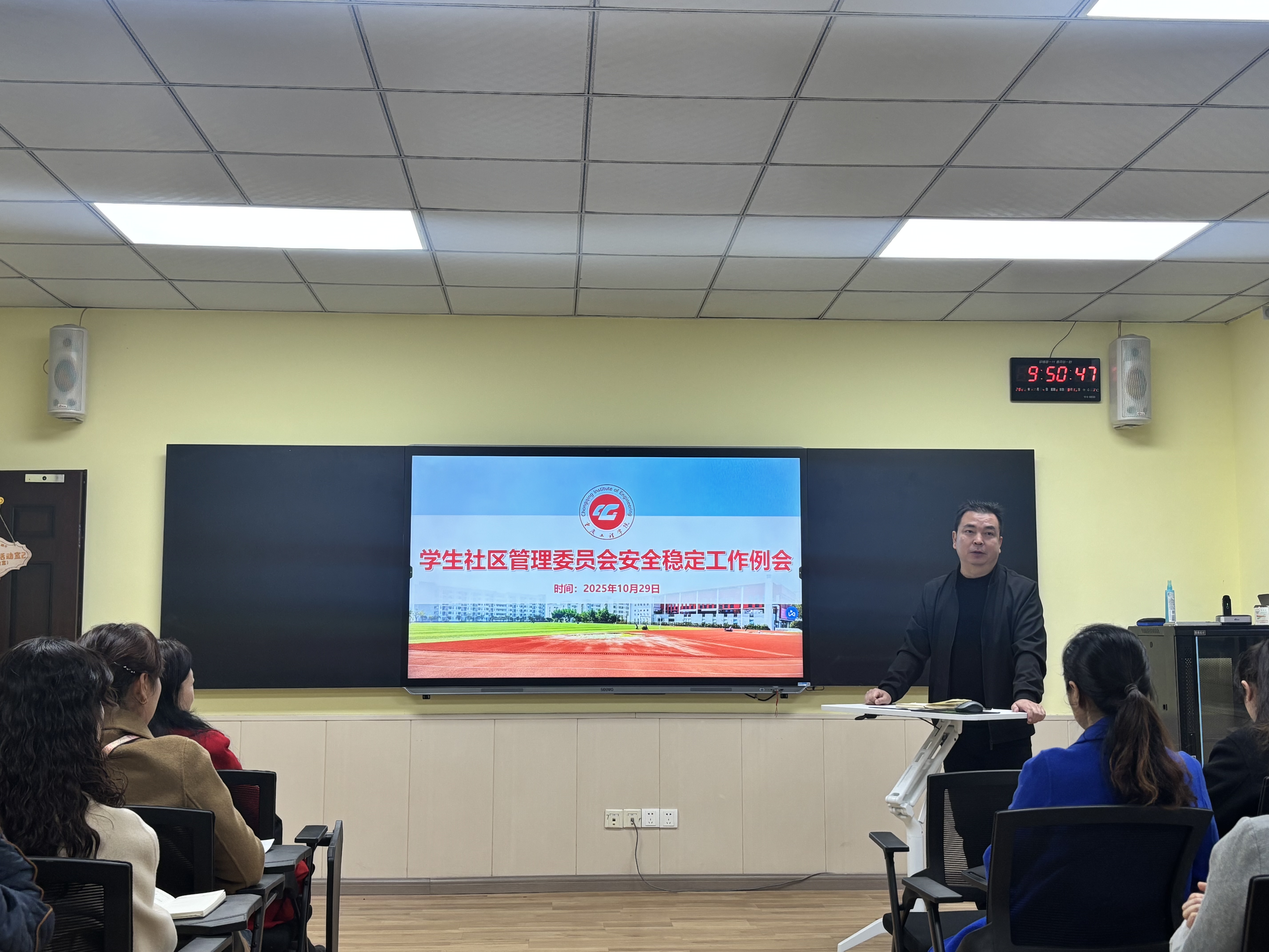 为全面夯实学生公寓安全基石,优化社区生活环境,2025年11月4日,重庆工程学院宿舍管理科在学生服务中心三楼组织召开宿舍管理员安全管理例会。学生处处长助理杨军、宿舍管理科祝毅、赵冰雪及22位宿舍管理员参加。