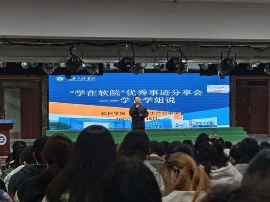 为助力2025级新生明晰学业规划、找准成长方向,2025年11月16日17时,软件学院、数字孪生产业学院在双桥校区办公楼报告厅联合开展“学在软院”优秀事迹分享会之“学长学姐说”主题活动,活动以“说成长——我的大学之路”为核心。软件学院学生科科长张运、双桥校区全体带班辅导员及2025级全体新生共同参与。