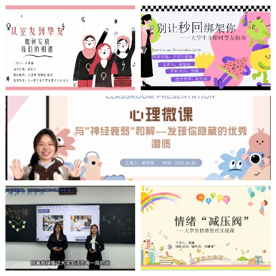 为响应国家卫健委关于加强心理健康和精神卫生宣传工作的号召,引导大学生积极关注心理健康,重庆工程学院心理健康教育与咨询中心携手各学院于2025年10月10日起,开展了大学生“心向阳光”微课比赛、“心成长·聚能量”心理主题班会比赛、“暖心贴士”海报创作比赛、二级学院心理辅导站特色活动、心理健康线上知识竞赛、心理讲座与主题心理沙龙一系列内容丰富、形式多样的主题活动。