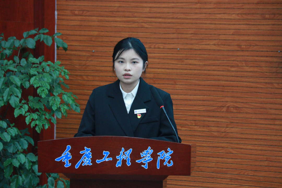 表彰环节结束后,大学生公寓管理服务中心(社区学生自治团队)负责人、优秀寝室长代表邬圣鱼同学上台发言。他以“宿心聚力 筑梦同行”为题,汇报了社区学生骨干2025-2026学年第一学期的工作概况与建设成果,言辞间充满热忱与自豪,既有对日常琐碎工作的细致梳理,也有对团队协作、服务同学的深切感悟;既客观呈现了工作数据与典型案例,也真诚表达了骨干成员在服务中成长、奉献的点滴感受,生动勾勒出一幅自我管理、自我服务、共同成长的生动图景。