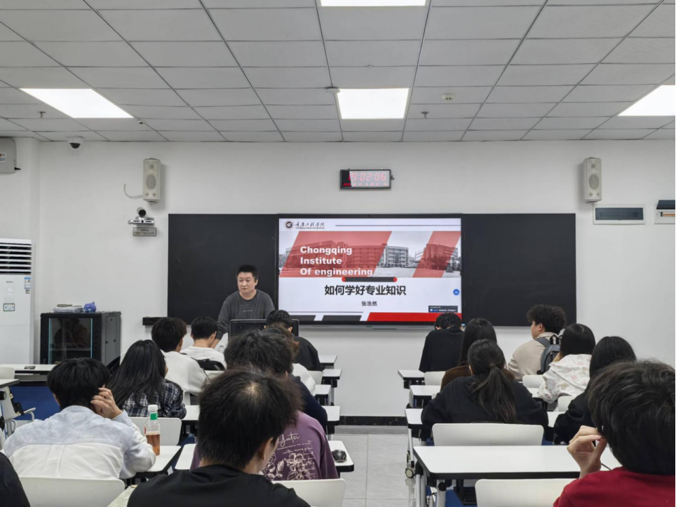 会上,张浩然老师结合自身经历,围绕专业学习核心要点展开讲解。他强调,专业知识学习无捷径,“多练”是关键,鼓励基础薄弱的同学从当下起步;同时他提出具体学习方法,包括养成记笔记习惯、代码练习后及时复盘创新、保持专注并坚持到底,最终实现从“学会”到“会学”的转变。此外,张浩然老师还为同学们解读了《重庆工程学院软件工程专业学生职业技能认定管理方法》,随后展示往期学生项目成果,让同学们直观感受到专业知识的实际应用价值。