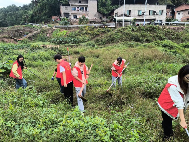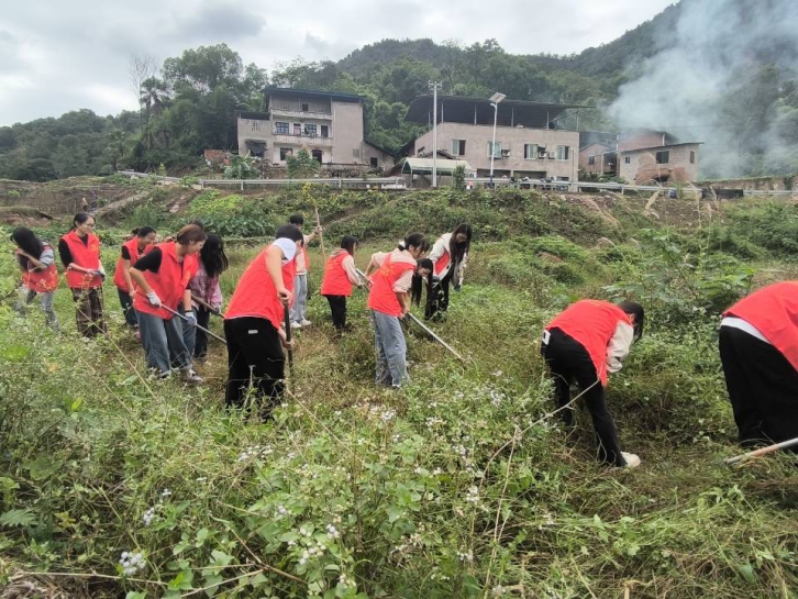 活动中,同学们身穿醒目的红色志愿马甲,深入乡村田野间。大家手持工具,分工协作,仔细清理杂草,为后续乡村产业发展相关的土地整理等工作打下基础。在劳动过程中,同学们热情高涨,相互配合,充分展现出团结协作的精神风貌。