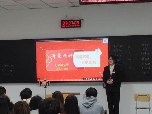 宣讲现场,团队成员围绕“中国共产党人精神谱系”主线,用故事化表达替代生硬理论。他们生动讲述沂蒙军民“水乳交融、生死与共”的支援故事,还原南泥湾军民“自力更生、开荒屯田”的奋斗场景,将抽象的精神内涵转化为可感可知的历史细节,让在场学子在聆听中与红色历史产生共鸣,主动萌发传承红色故事的意识。活动尾声,指导教师王薇老师精准点评,既肯定“故事化宣讲”的创新优势,也指出内容衔接、互动设计的改进方向,为团队后续提升指明路径。