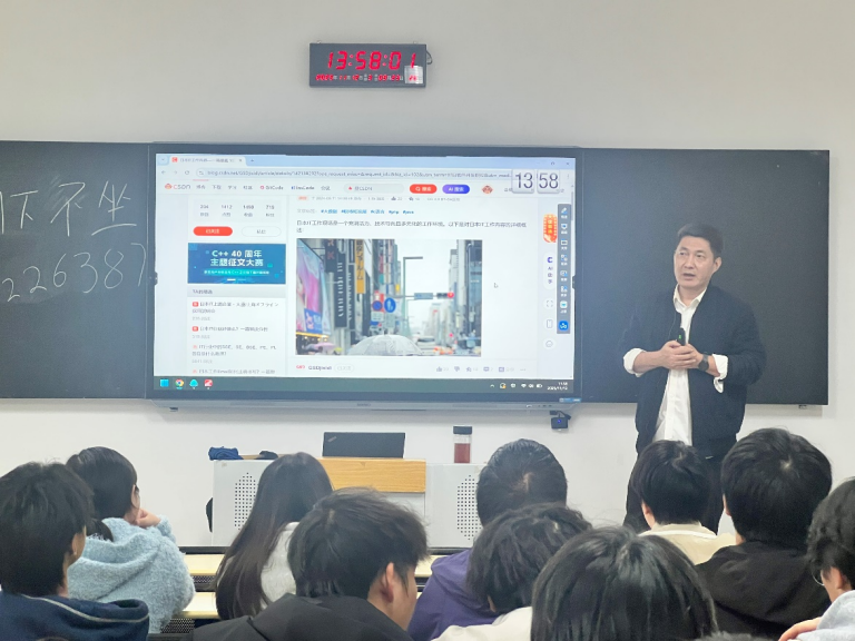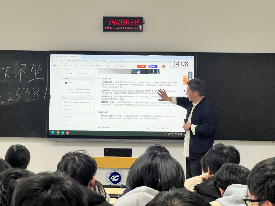 为进一步增强专业能力赋能就业,帮助同学们明确对日软件开发行业发展方向、精准规划专业学习路径,24软工5班于2025年11月12日在第六教学楼111教室开展对日软件开发就业发展专业学习活动,本次活动由班导师皮少华全程主讲,全体同学参与。