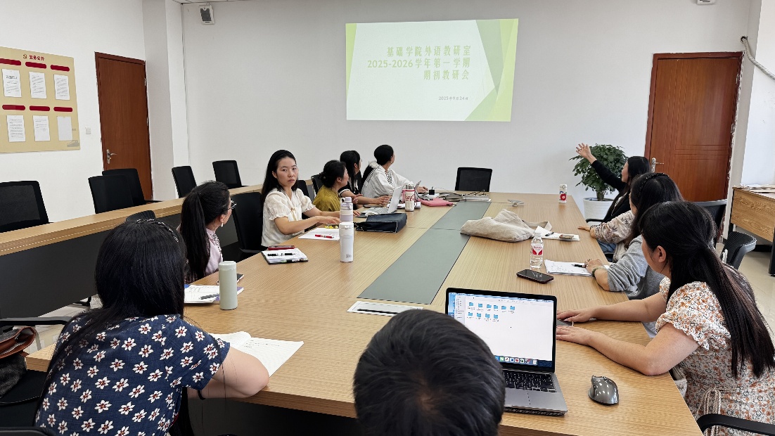 新学期伊始,为确保各项教学工作有序、高效开展,外语教研室于2025年9月24日下午16点,在双桥校区第三会议室召开了本学期的期初教学工作会议。会议由外语教研室张金梅主任主持,围绕本学期核心课程的教学安排与要求进行了深入研讨和部署。