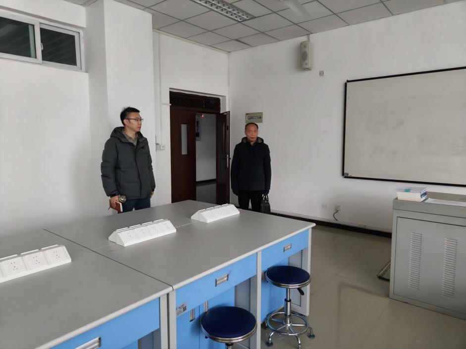 为切实保障寒假期间实验室的安全稳定运行,及时消除潜在安全隐患,确保师生度过一个安全、祥和的假期,2026年1月22日上午,基础学院院长蒋国华亲自带队,组织学院检查小组对基础学院物理实验室、语音室展开了全面且细致的期末实验室安全检查工作。