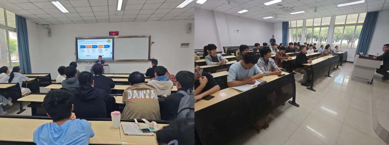 宣讲会开始,罗久飞首先通过介绍自己的科研生涯、各大奖项及研究生与本科生的区别引出我们为什么要考研。其次,着重介绍了研究生的日常科研过程、自己带研究生的经历和取得的项目科研成就让同学们了解到了研究生的日常生活、福利待遇、所得所获等。罗久飞教授还告知同学们一定要抱着苦心攻克科研问题的心态读研,才能更好的度过研究生生涯。