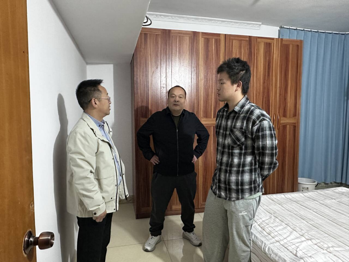 在走访过程中,刘达斌围绕学生居住安全与生活质量展开细致排查,重点查看了租住寝室的用电安全、消防设施配备、环境卫生等情况,对发现的潜在安全隐患现场提醒学生及时整改。同时,他与学生及家长亲切座谈,深入询问同学们近期的课程学习进度、专业实习规划以及校外生活适应情况,结合学生个体发展需求,从学业提升、职业规划、安全防护等方面给予针对性建议与指导。