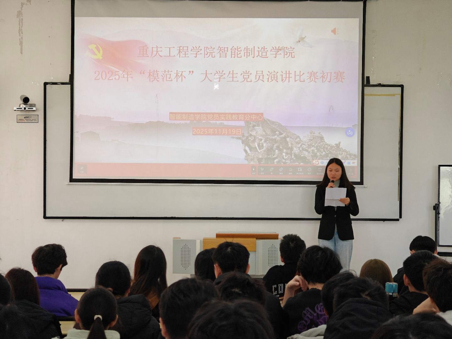 为弘扬榜样力量,激发青年学子的责任担当,智能制造学院党员实践教育分中心于11月19日在第六教学楼开展2025年“模范杯”大学生党员演讲比赛初赛。本次比赛以“争做时代青年,弘扬楷模精神”为主题,吸引了支部全体党员(预备党员)、入党积极分子踊跃参与。
