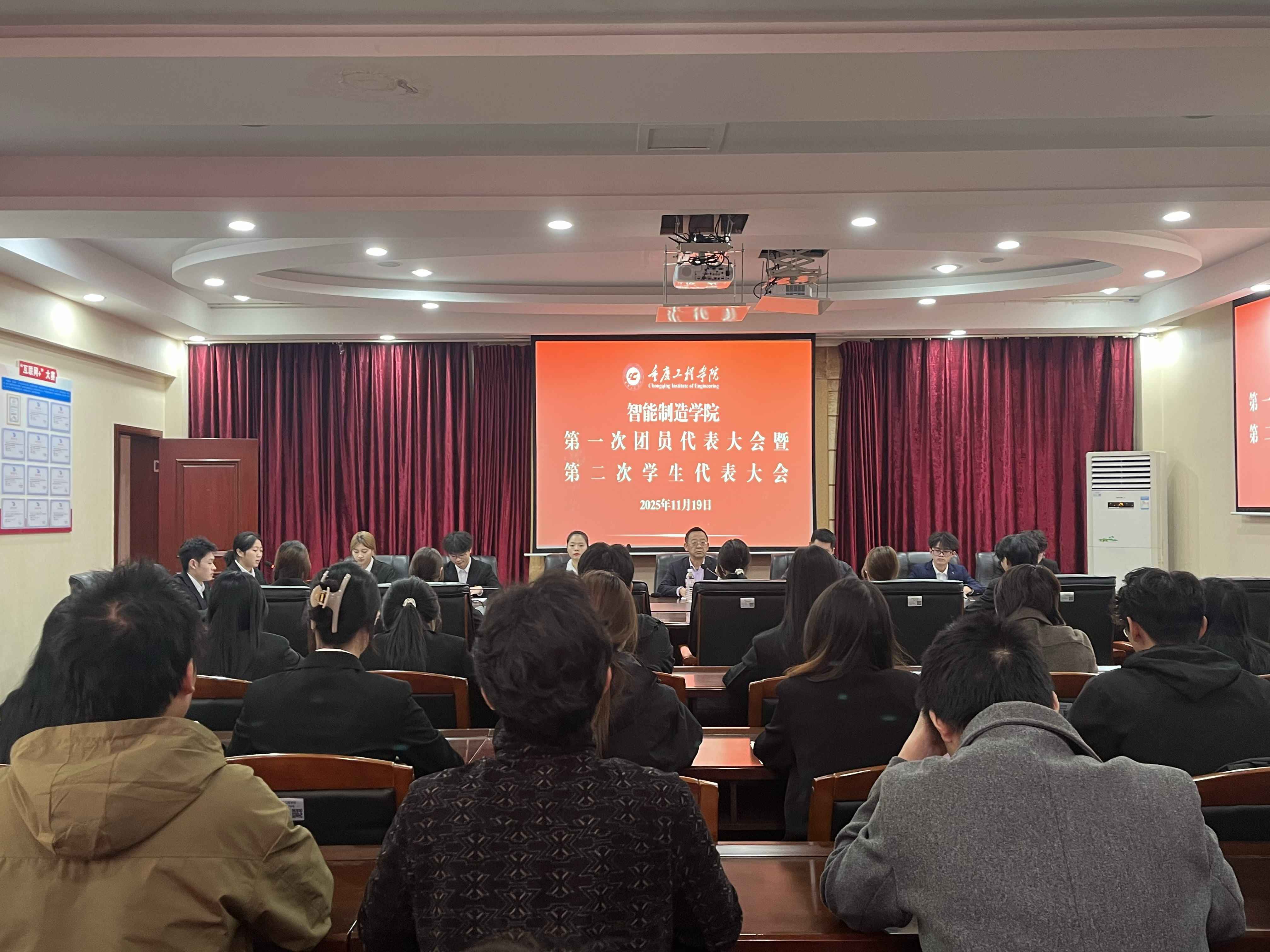 为凝聚青春力量,谱写团学新篇,2025年11月19日,智能制造学院第一次团员代表大会暨第二次学生代表大会在办公楼212会议室隆重召开。学院党总支书记刘达斌、校团委代表钟定均、学工科副科长李小凤及全体正式代表、列席代表齐聚一堂,共商学院团学发展大计。