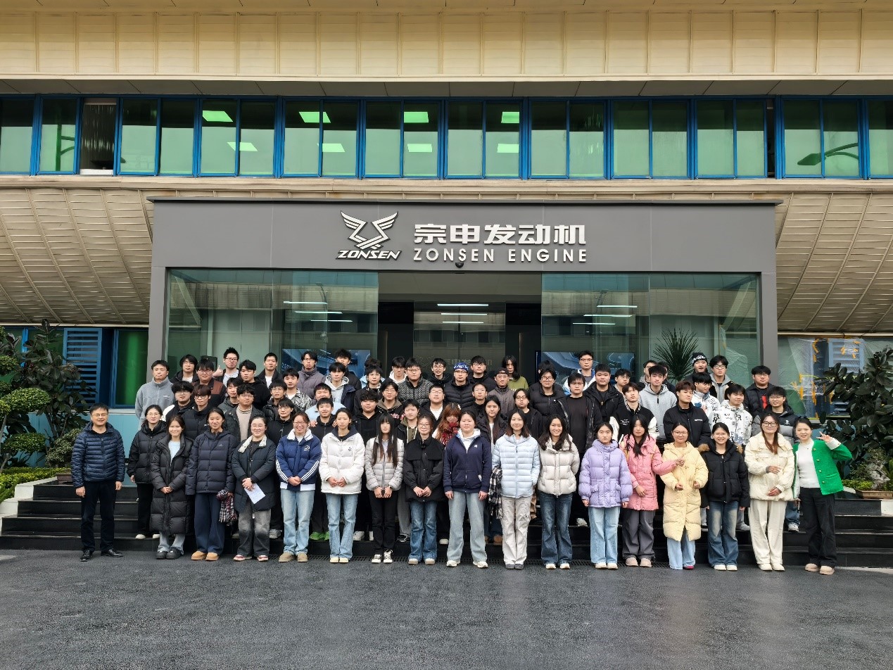 宗申产业集团相关负责人对师生到访表示热烈欢迎,并陪同参观了产品展示区、宗申发动机核心生产车间以及忽米网络科技。师生近距离观摩了产品生产全流程,详细了解企业在智能制造、数字孪生、工业互联网等领域的技术成果。企业技术骨干结合生产实际,系统讲解了发电机智能产线的运行模式,并对学生提出的专业问题给予了细致解答。