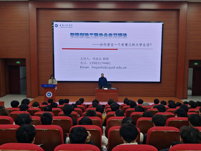 为助力学生深入了解智能制造工程专业,明晰专业方向,科学规划学业发展,12月24日14:30,智能制造学院在双桥校区三教3605报告厅举办了2025级智能制造工程专业宣讲会。本次讲座特别邀请了重庆科技大学何高法教授担任主讲嘉宾,由院团委副书记杨懿老师主持,智能制造工程专业辅导员与全体学生共同参与。