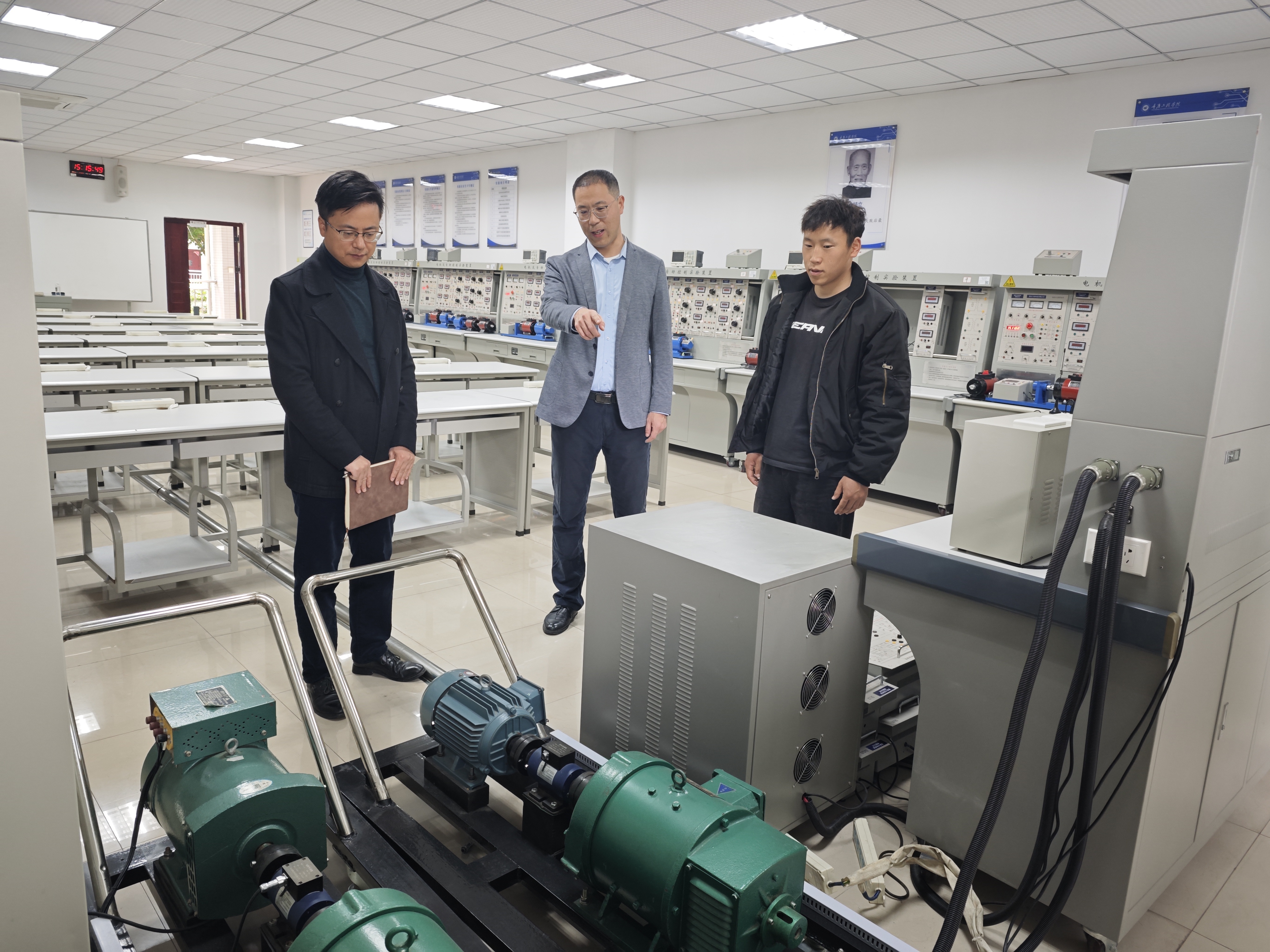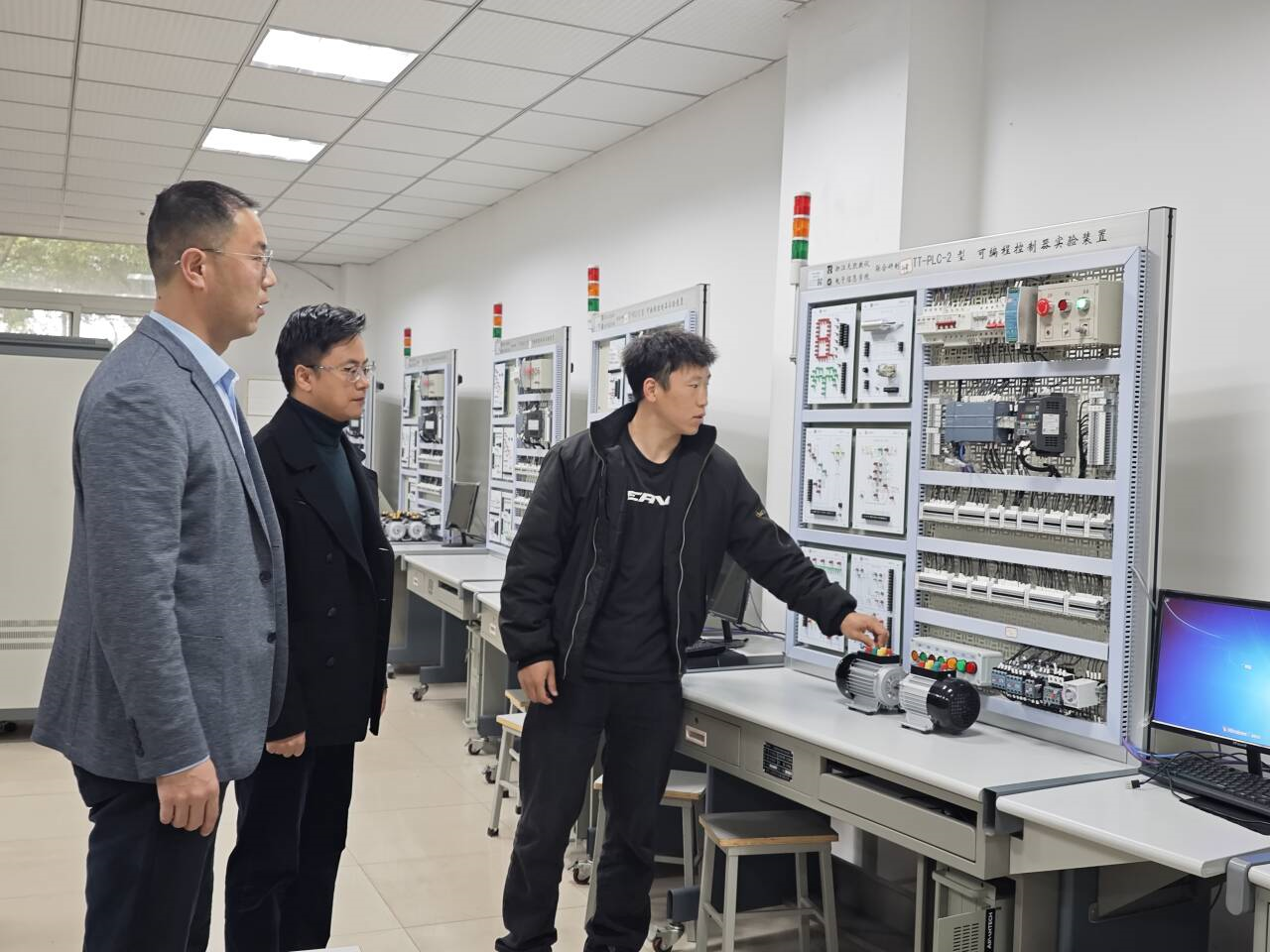 本次检查聚焦安全风险关键环节,重点对电工技术实验室、PLC技术实验室、电力电子实验室等核心实验场所展开排查,围绕带电实验设备布线规范、电线插板完好性、设备运行状态、安全防护设施配备等情况进行排查,对发现的潜在安全隐患逐一记录、明确整改方向。