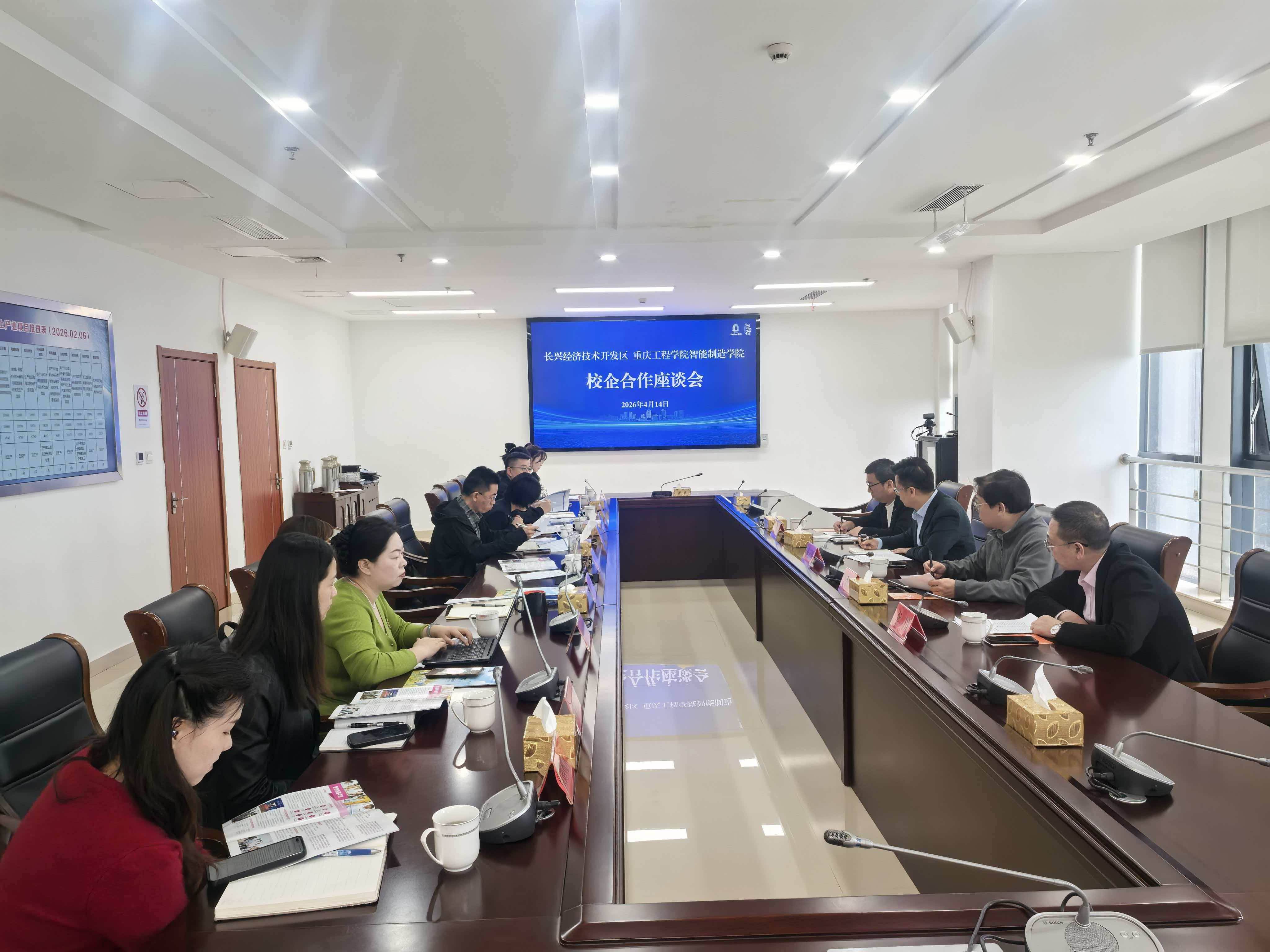 4月14日下午,重庆工程学院智能制造学院前往长兴访企拓岗,为打通学生与企业最后一公里,在长兴经济开发区与长兴县人社局的精心组织下,一场聚焦技能型人才培养的校企座谈会在长兴经济开发区会议室顺利召开。长兴县多家规上企业代表齐聚一堂,一致指出,当前企业对高素质技能型人才需求旺盛,但学生毕业后实际留任率偏低、岗位适应性不强,已成为突出问题。双方围绕如何破解“引人易、留人难”这一现实困境,就订单班培养模式、课程共建、实习管理及职业认同感提升等议题展开了深入交流与探讨。